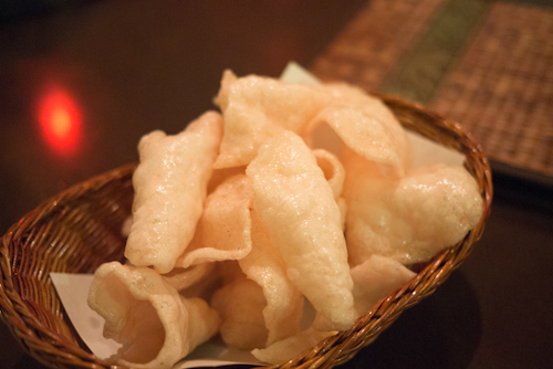 着席すると山盛りのえびせん。(多すぎるだろっ!)