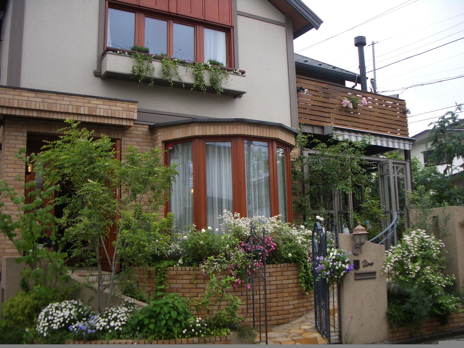 一軒家のテラスとガーデンが喫茶スペースになっています。