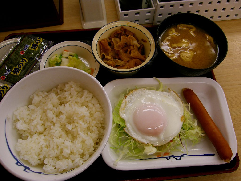吉牛はキャベツも少なく玉子もSサイズ。