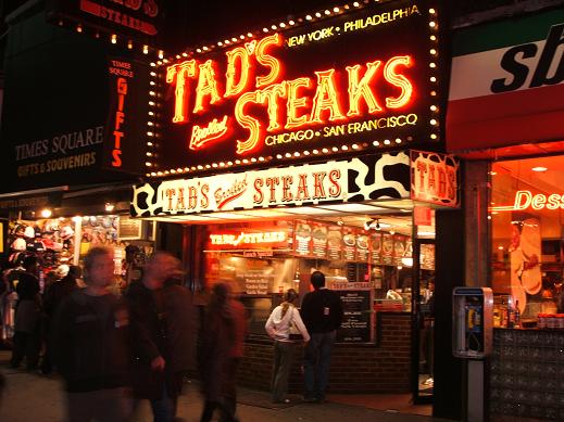 タイムズ・スクエアのセブンス・アベニュー沿いにある、「TAD'S STEAKS」だった。
