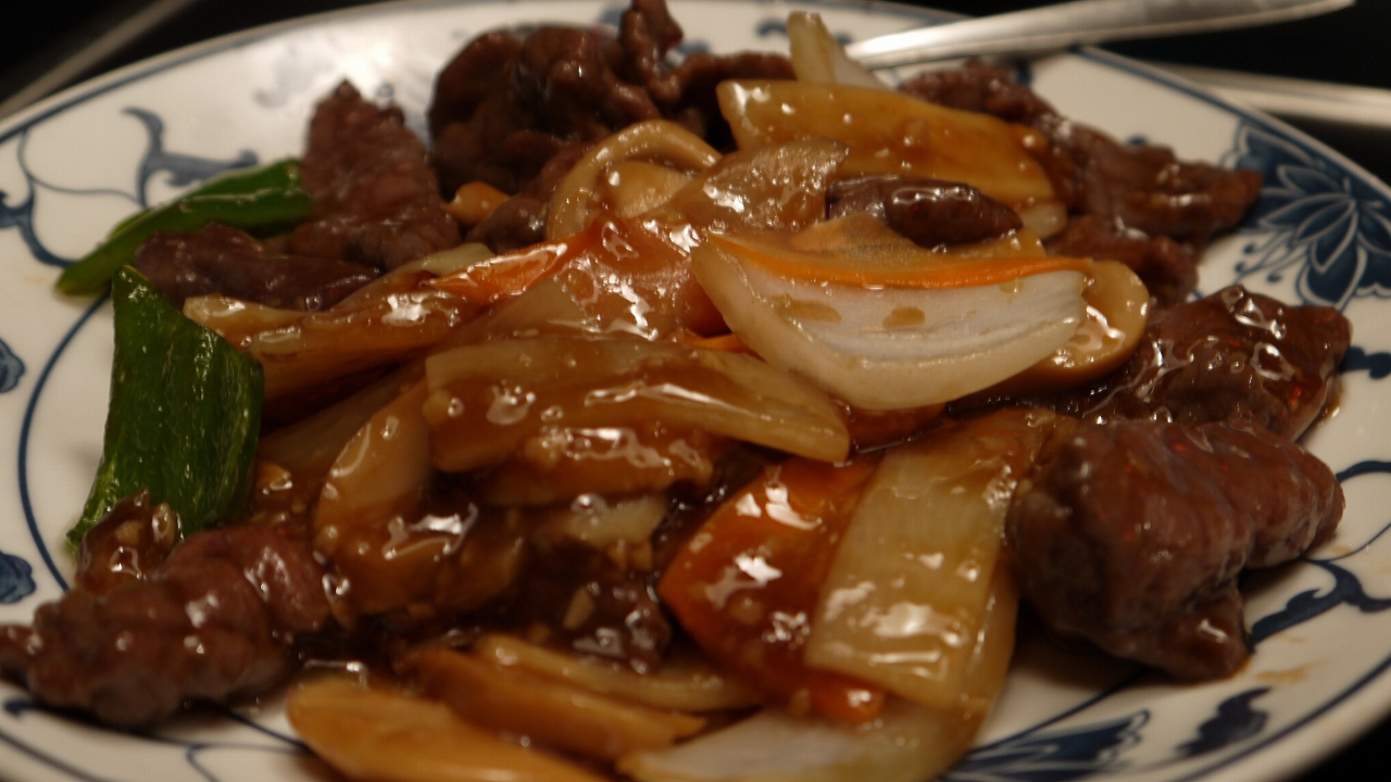 ガンガン頼もうと思っていたが最初に出てきたのが10インチプレートでちゃんとした牛肉とトマトの炒め物。